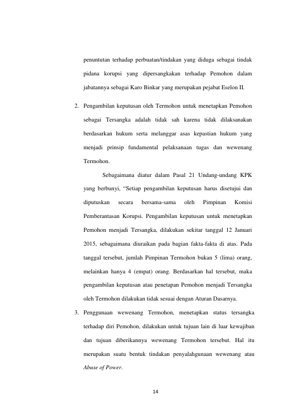 Harist Siddiq, STUDI KASUS TERHADAP PUTUSAN PRAPERADILAN NO. 04/PID.PRAP/2015/PN-JKT.SEL. TENTANG PENETAPAN STATUS TERSANGKA TERHADAP KOMISARIS JENDERAL POLISI DRS. BUDI GUNAWAN. SH., MSI.. Banda Aceh Universitas Syiah Kuala,2016