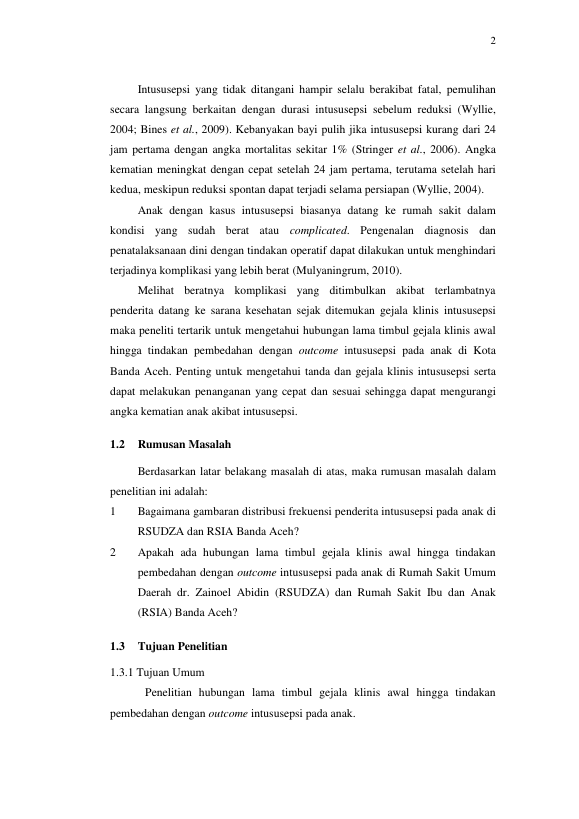 Baca Juga : HUBUNGAN LAMA TIMBUL GEJALA KLINIS AWAL HINGGA TINDAKAN PEMBEDAHAN DENGAN OUTCOME INTUSUSEPSI PADA ANAK DI RUMAH SAKIT DR. ZAINOEL ABIDIN DAN RUMAH SAKIT IBU DAN ANAK BANDA ACEH (Putri Khamsari, 2016)