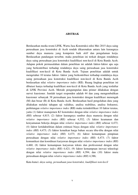 Muhammad Khilbran, KAJIAN DAYA SAING PERUSAHAAN JASA KONSTRUKSI KUALIFIKASI NON-KECIL DI KOTA BANDA ACEH. Banda Aceh Universitas Syiah Kuala,2016
