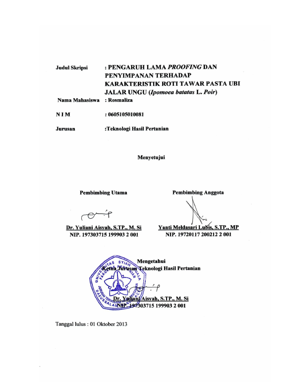 rosmaliza, PENGARUH WAKTU PROOFING DANPENYIMPANAN TERHADAP KARAKTERISTIK ROTI TAWAR PASTA UBI JALAR UNGU (Ipomoea batatas L. poir). Banda Aceh Fakultas Teknologi Hasi Pertanian,2013