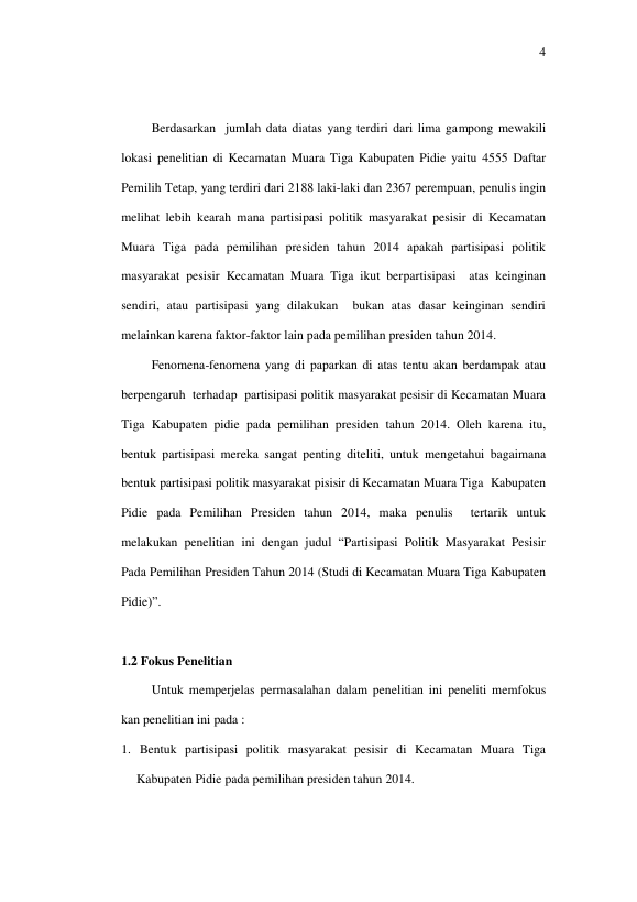 Baca Juga : PENGARUH PEMBERITAAN PEMILIHAN PRESIDEN PADA RUBRIK SERAMBI ELECTION HARIAN SERAMBI INDONESIA TERHADAP PARTISIPASI POLITIK (STUDI PADA MAHASISWA UNIVERSITAS SYIAH KUALA) (Ayu Haryati, 2016)