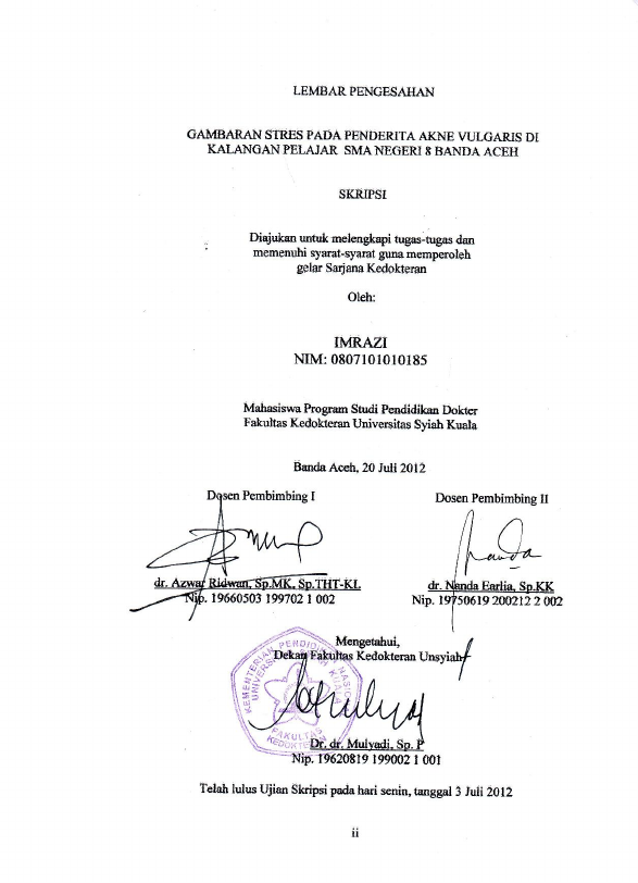 Baca Juga : GAMBARAN STRES PADA PENDERITA AKNE VULGARIS DI KALANGAN PELAJAR SMA NEGERI 8 BANDA ACEH (Imrazi, 2016)