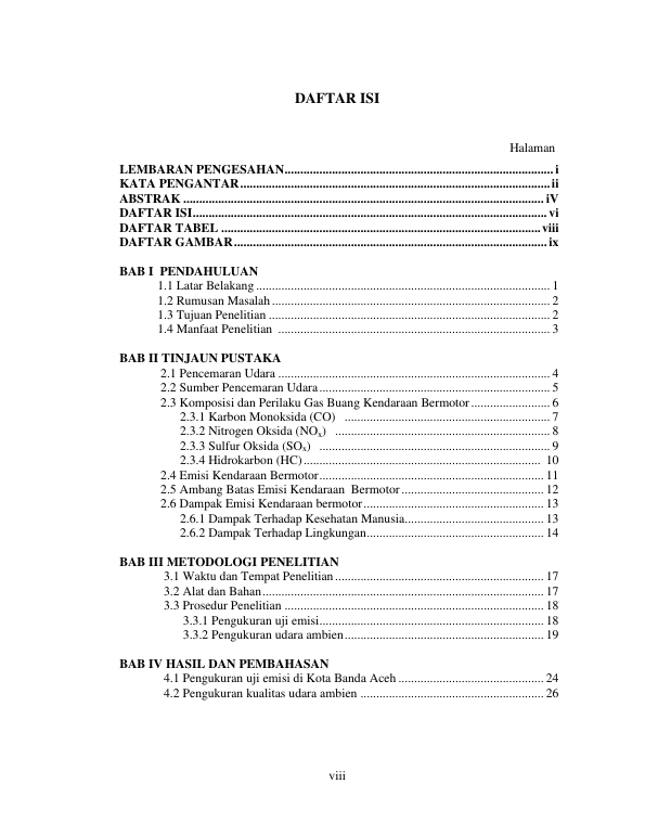 HAJRAH GAYPA, UJI EMISI KENDARAAN RODA EMPAT DAN PEMANTAUAN KUALITAS UDARA DI KOTA BANDA ACEH. Banda Aceh Universitas Syiah Kuala,2016