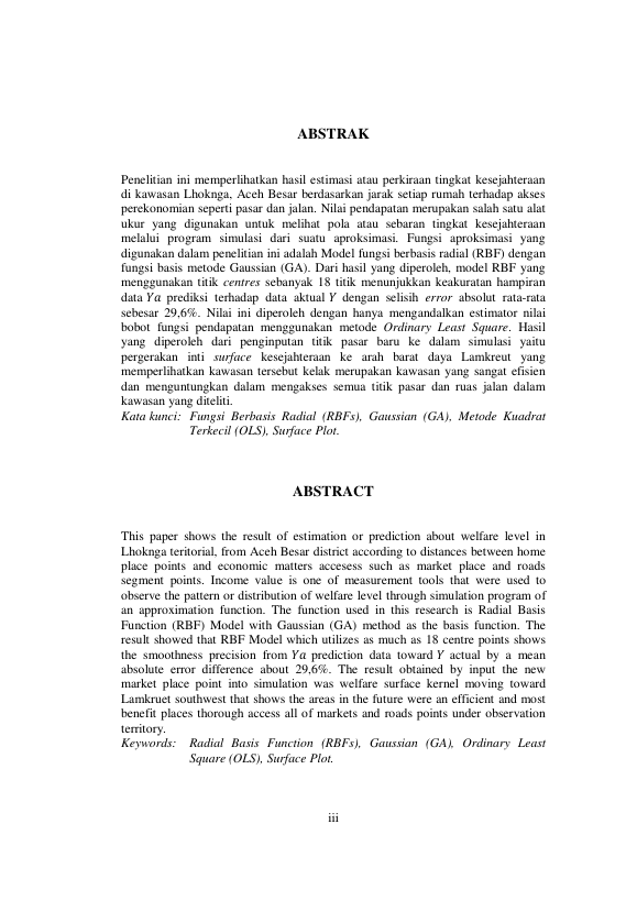 Nauval Zawawi, ESTIMASI TINGKAT KESEJAHTERAAN BERDASARKAN JARAK TERHADAP AKSES EKONOMI MENGGUNAKAN FUNGSI BERBASIS RADIAL (RBF) (STUDI KASUS DI BEBERAPA KAMPUNG KEC. LHOKNGA, KAB. ACEH BESAR). Banda Aceh Universitas Syiah Kuala,2016