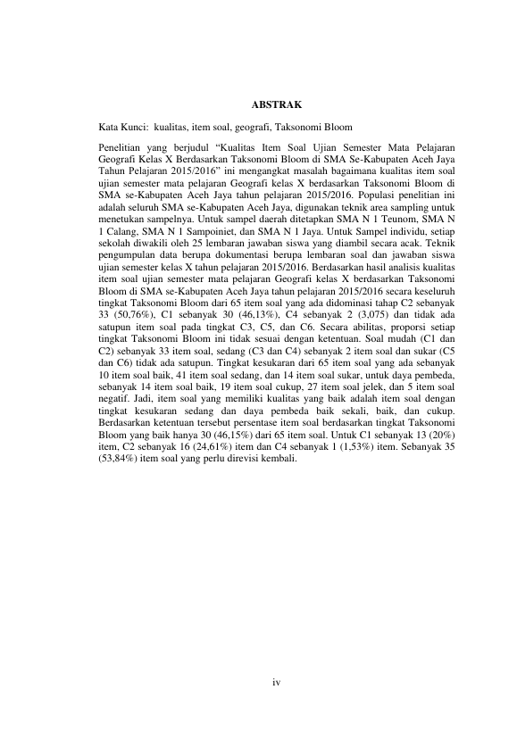 Baca Juga : ANALISIS SOAL UJIAN SEMESTER MATA PELAJARAN FISIKA KELAS VIII SMP FATIH BILLINGUAL SCHOOL BANDA ACEH TAHUN AJARAN 2015-2016 (DITINJAU DARI SEGI TINGKAT KESUKARAN, DAYA PEMBEDA DAN FUNGSI DISTRAKTOR). (Yudia Mutiara, 2016)