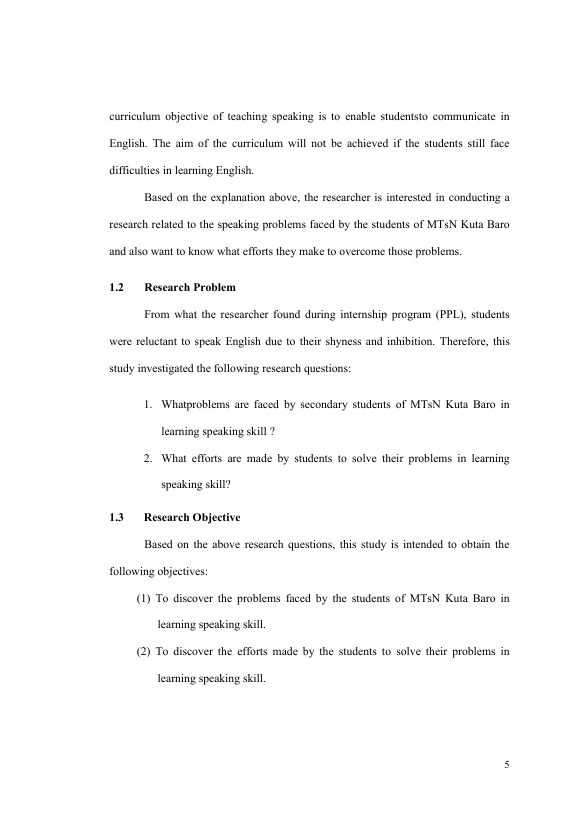 RIZKA MULYA PHONNA, THE SPEAKING PROBLEMS FACED BY SECONDARY STUDENTS AND THEIR EFFORTS IN SOLVING THE PROBLEMS (A CASE STUDY AT MTSN KUTA BARO, ACEH BESAR). Banda Aceh Fakultas Keguruan dan Ilmu Pendidikan,2016