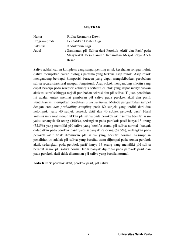 Baca Juga : HUBUNGAN PH SALIVA PEROKOK TEMBAKAU AKTIF DENGAN INDEKS DMF-T (STUDI PADA MASYARAKAT GAMPONG COT MESJID) (DINI AJENG SAVITRI, 2025)