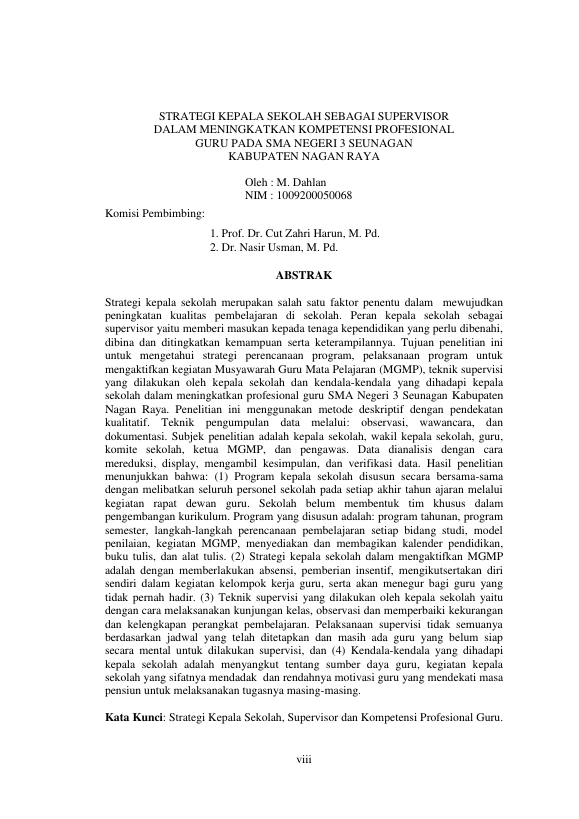 Baca Juga : STRATEGI KEPALA SEKOLAH SEBAGAI SUPERVISOR DALAM MENINGKATKAN KOMPETENSI PROFESIONAL GURU PADA SMA NEGERI 3 SEUNAGAN KABUPATEN NAGAN RAYA (M. DAHLAN, 2016)