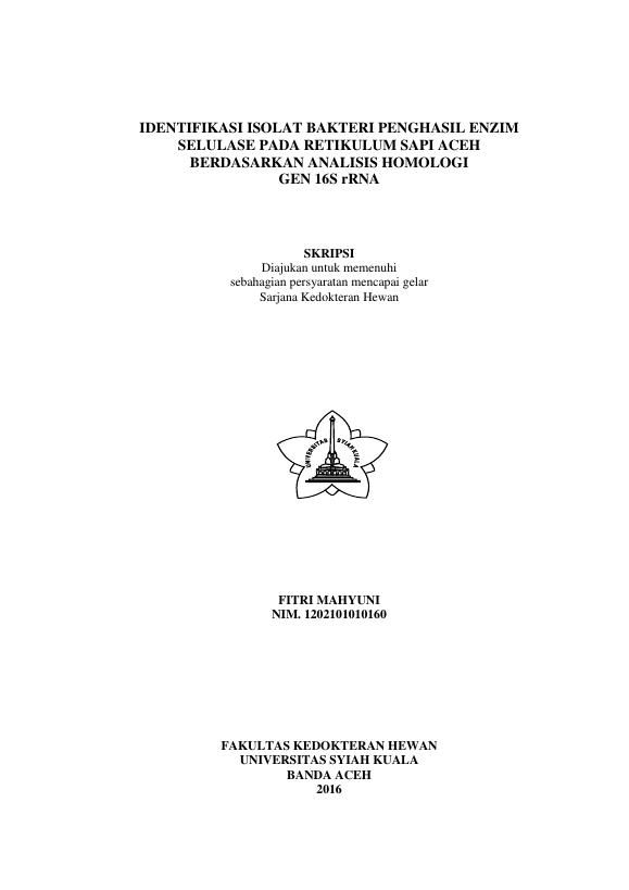 Baca Juga : IDENTIFIKASI BAKTERI PROTEOLITIK PADA RETIKULUM SAPI ACEH BERDASARKAN GEN 16S RRNA (Ulfi Widi Arsih, 2017)