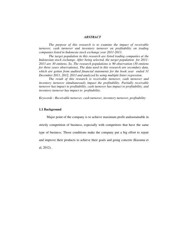 Baca Juga : PENGARUH CURRENT RATIO, INVENTORY TURNOVER, RECEIVABLE TURNOVER DAN NET WORKING CAPITAL TURNOVER TERHADAP RENTABILITAS PADA PERUSAHAAN MANUFAKTUR YANG TERDAFTAR DI BURSA EFEK INDONSEIA TAHUN 2010-2012 (Rizki Maulana, 2014)