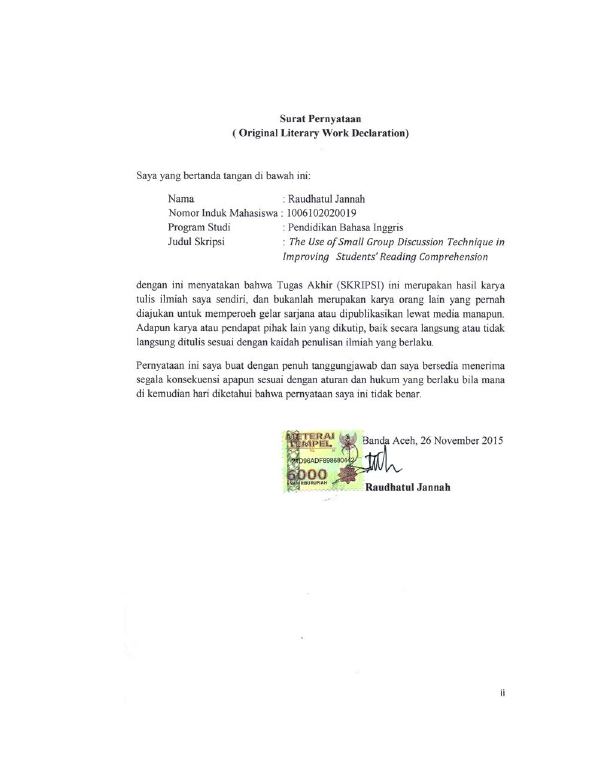 Baca Juga : THE USE OF SMALL GROUP WORK TECHNIQUE IN IMPROVING STUDENTS’ READING COMPREHENSION (AN EXPERIMENTAL STUDY AT SMPN 1 BAITUSSALAM, ACEH BESAR). THESIS, GRADUATE PROGRAM IN ENGLISH LANGUAGE EDUCATION, SYIAH KUALA UNIVERSITY, DARUSSALAM, BANDA ACEH. (An Nisaa Rahmadani, 2016)