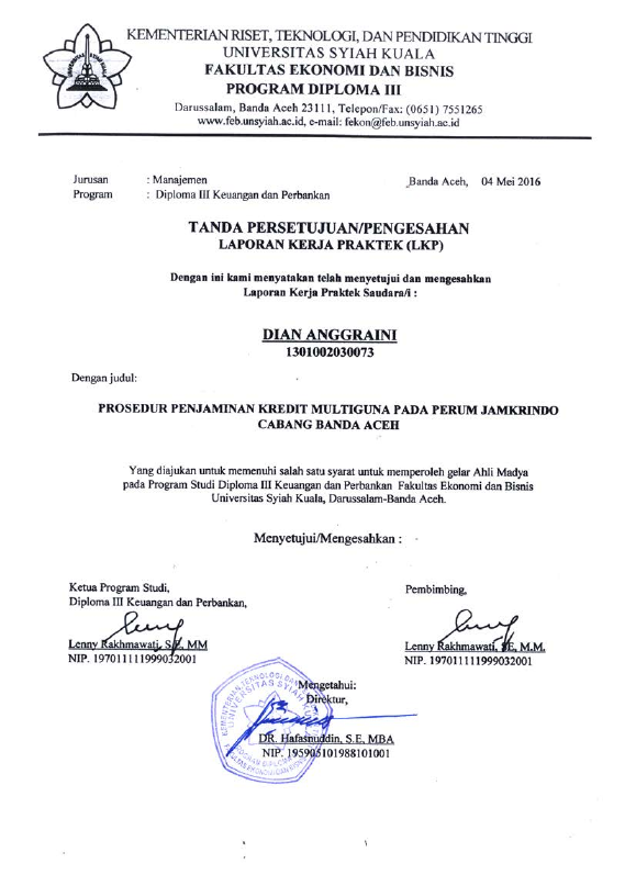 Baca Juga : PROSEDUR PENGAJUAN, PERSETUJUAN, DAN PEMBAYARAN KLAIM KREDIT USAHA RAKYAT (KUR) GEN II PADA PERUM JAMKRINDO CABANG BANDA ACEH (PUTRI GITA AZANNA, 2018)