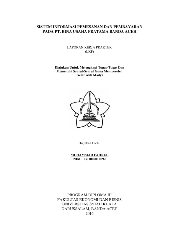 Baca Juga : SISTEM INFORMASI PEMESANAN DAN PEMBAYARAN PADA PT. BINA USAHA PRATAMA BANDA ACEH ( MUHAMMAD FAHRUL, 2016)
