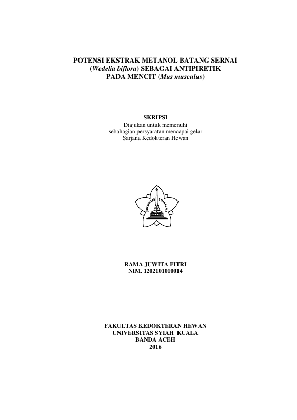 Baca Juga : POTENSI EKSTRAK METANOL DAUN SERNAI (WEDELIA BIFLORA) SEBAGAI ANTIPIRETIK PADA MENCIT (MUS MUSCULUS) (Ririn Angeliarni Ariesari, 2016)