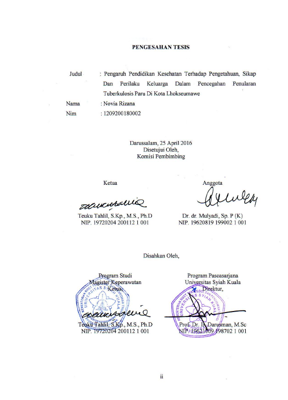 Baca Juga : PENGARUH PENDIDIKAN KESEHATAN TERHADAP PENGETAHUAN, SIKAP DAN PERILAKU KELUARGA DALAM PENCEGAHAN PENULARAN TUBERKULOSIS PARU DI KOTA LHOKSEUMAWE (Novia Rizana, 2016)