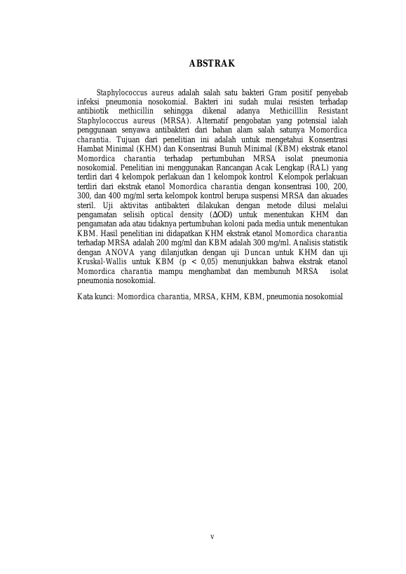 Baca Juga : UJI AKTIVITAS ANTIBAKTERI EKSTRAK ETANOL DAUN PARE (MOMORDICA CHARANTIA)TERHADAP METHICILLIN RESISTENT STAPHYLOCOCCUS AUREUS ISOLAT PNEUMONIA PASIEN RSUDZA SECARA DILUSI (M. Rizky Fachri, 2016)