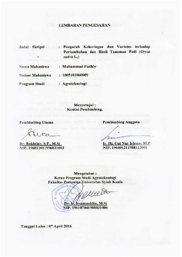 Baca Juga : PENGARUH KEKERINGAN DAN VARIETAS TERHADAP PERTUMBUHAN DAN HASIL TANAMAN PADI (ORYZA SATIVA L.) (MUHAMMAD FADHLY, 2016)