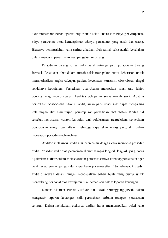 CUT ISMI WILDA FITRI, PROSEDUR PELAKSANAAN AUDIT PERSEDIAAN BLUD RSUD DR. H. YULIDDIN AWAY PADA KANTOR AKUNTAN PUBLIK ZULFIKAR DAN RIZAL BANDA ACEH. Banda Aceh Universitas Syiah Kuala,2016