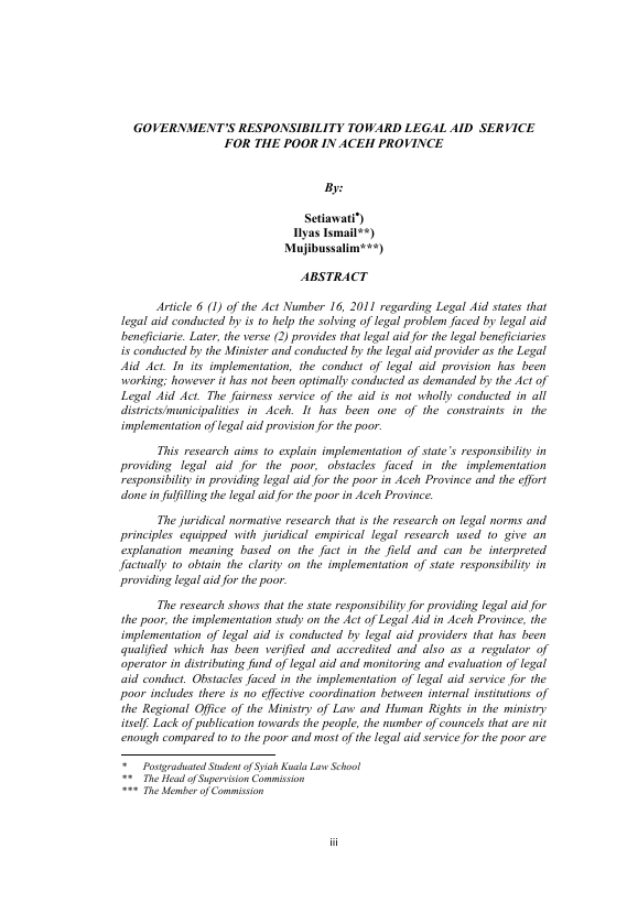 Baca Juga : PEMBERIAN BANTUAN HUKUM KEPADA MASYARAKAT MISKIN DALAM PERKARA PIDANA (SUATU PENELITIAN DI KABUPATEN PIDIE) (Fitria, 2016)