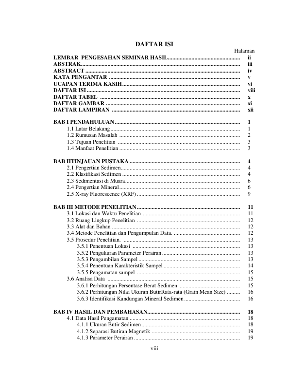 Rezki Adidarma, KARAKTERISTIK UKURAN BUTIR SEDIMEN DAN KANDUNGAN MINERAL DI MUARA PULAU KAYU KABUPATEN ACEH BARAT DAYA. Banda Aceh Universitas Syiah Kuala,2016
