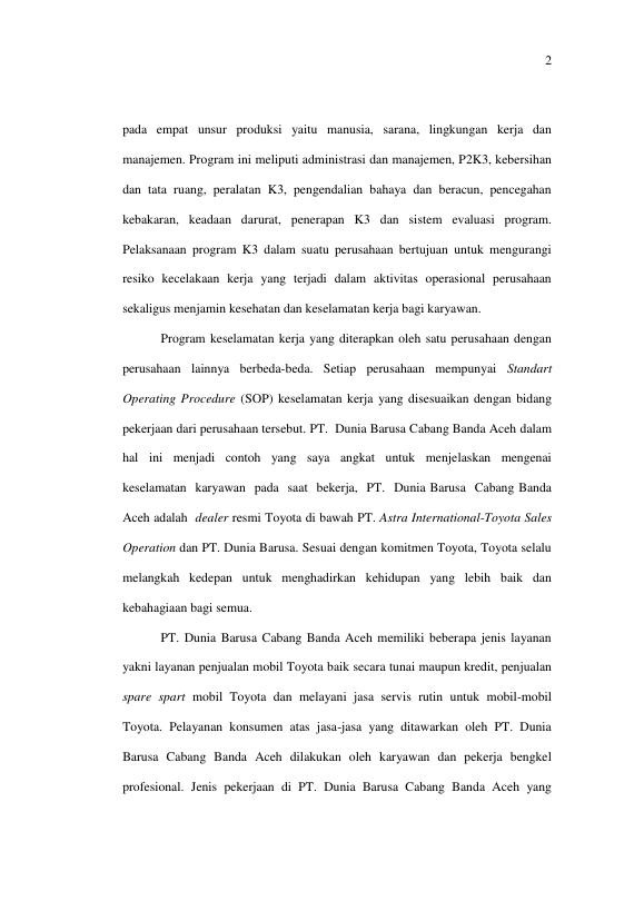 MAULISA FITTRI MT, PENERAPAN KESELAMATAN TERHADAP PEKERJA BENGKEL DI PT. DUNIA BARUSA CABANG BANDA ACEH. Banda Aceh Universitas Syiah Kuala,2016