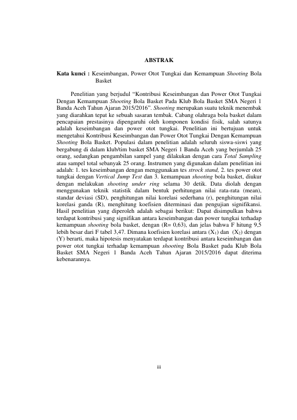 Bayu Kawla Yodhi Adha, KONTRIBUSI KESEIMBANGAN DAN POWER OTOT TUNGKAI TERHADAP KEMAMPUAN SHOOTING BOLA BASKET PADA KLUB BOLA BASKET SMA NEGERI BANDA ACEH TAHUN AJARAN 2015/2016. Banda Aceh Universitas Syiah Kuala,2016