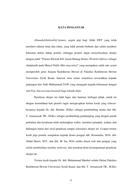 Baca Juga : UJI ANALGESIK FRAKSI ETIL ASETAT DAUN SERNAI (WEDELIA BIFLORA) PADA MENCIT (MUS MUSCULUS) (Azhyumardi, 2015)