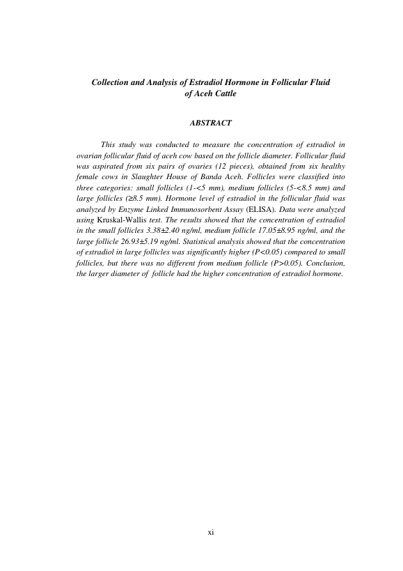 Rumi Sahara Zamzami, KOLEKSI DAN ANALISIS HORMON ESTRADIOL PADA CAIRAN FOLIKEL SAPI ACEH. Banda Aceh Universitas Syiah Kuala,2016