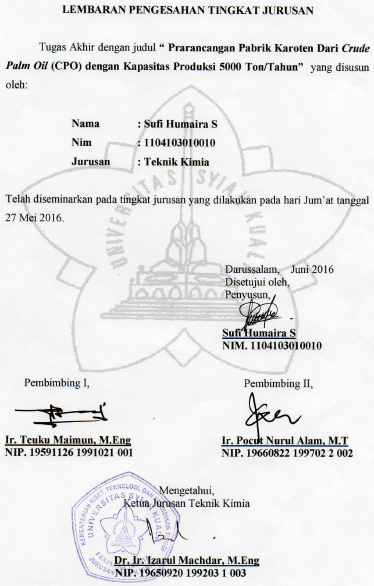 Baca Juga : PRARANCANGAN PABRIK KAROTEN DARI CRUDE PALM OIL (CPO) DENGAN KAPASITAS PRODUKSI 5000 TON/TAHUN (Sufi Humaira S, 2016)
