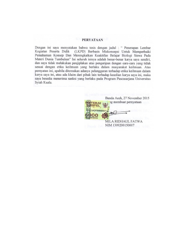 Baca Juga : PENGEMBANGAN LEMBAR KERJA PESERTA DIDIK (LKPD) BERDASARKAN TUMBUHAN DI HUTAN KOTA BANDA ACEH MATERI KEANEKARAGAMAN HAYATI (Anindita Syafitri, 2018)