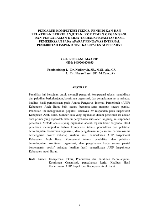 Baca Juga : PENGARUH KOMPETENSI TEKNIS, PENDIDIKDAN DAN PELATIHAN BERKELANJUTAN, KOMITMEN ORGANISASI, DAN PENGALAMAN KERJA PADA APARAT PENGAWAS INTERNAL PEMERINTAH INSPEKTORAT KABUPATEN ACEH BARAT (ruskanu maarif, 2016)