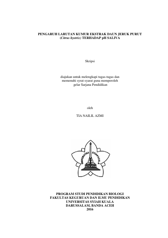 Tia Nailil Azmi, PENGARUH LARUTAN KUMUR EKSTRAK DAUN JERUK PURUT (CITRUS HYSTRIX) TERHADAP PH SALIVA. Banda Aceh Universitas Syiah Kuala,2016