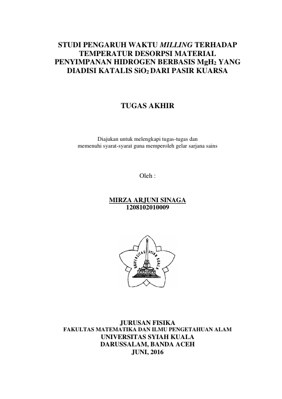 Baca Juga : STUDI PENGARUH KATALIS SIO2 DARI PASIR KUARSA TERHADAP TEMPERATUR DESORPSI MATERIAL PENYIMPANAN HIDROGEN BERBASIS MGH2 (INDAH ANGGREINI AKBAR, 2016)
