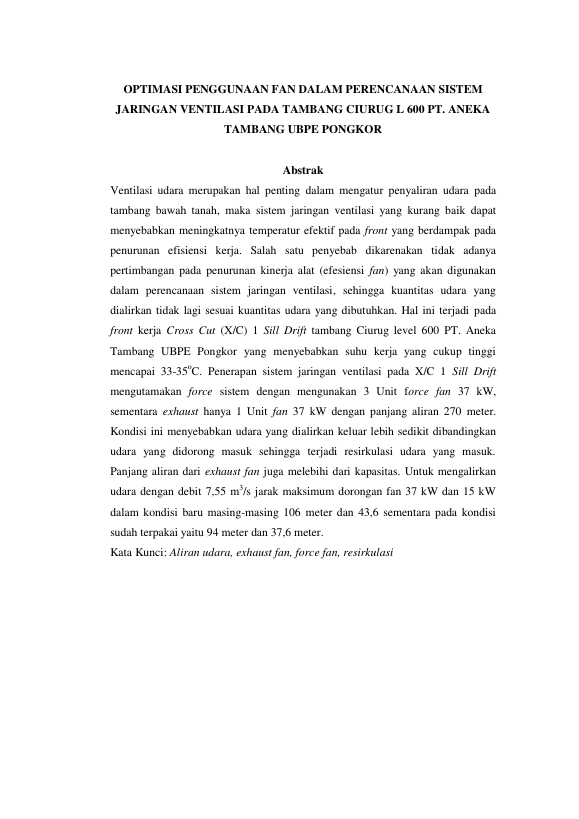 Baca Juga : OPTIMASI PENGGUNAAN FAN DALAM PERENCANAAN SISTEM JARINGAN VENTILASI PADA TAMBANG CIURUG L 600 PT. ANEKA TAMBANG UBPE PONGKOR (Tadwin Ilmi Shahara, 2016)