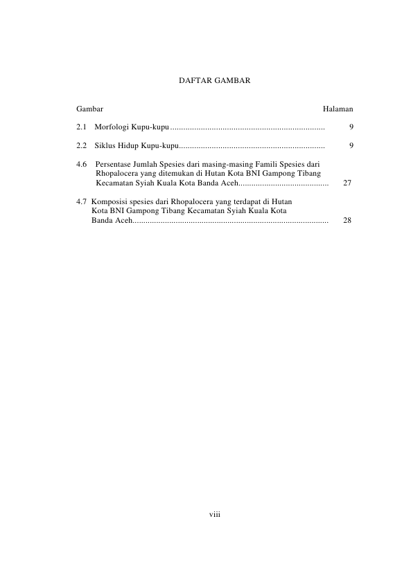 Ratih Muri Hayati, TINGKAT DOMINANSI SPESIES DARI RHOPALOCERA DI HUTAN KOTA BNI GAMPONG TIBANG KECAMATAN SYIAH KUALA KOTA BANDA ACEH. Banda Aceh Fakultas Keguruan dan Ilmu Pendidikan,2013