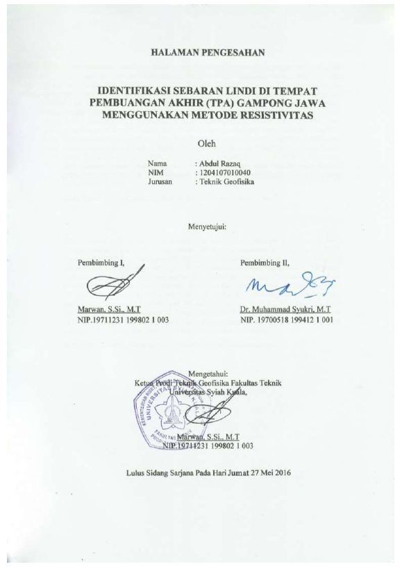 Abdul Razaq, IDENTIFIKASI SEBARAN LINDI DI TEMPAT PEMBUANGAN AKHIR (TPA) GAMPONG JAWA MENGGUNAKAN METODE RESISTIVITAS. Banda Aceh Universitas Syiah Kuala,2016