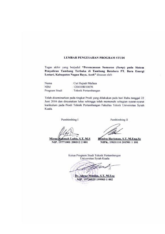Baca Juga : PERENCANAAN SUMURAN (SUMP) PADA SISTEM PENYALIRAN TAMBANG TERBUKA DI PIT IV TAMBANG BATUBARA PT. BARA ENERGI LESTARI, KABUPATEN NAGAN RAYA, ACEH (Cut Hujrah Mafaza, 2016)