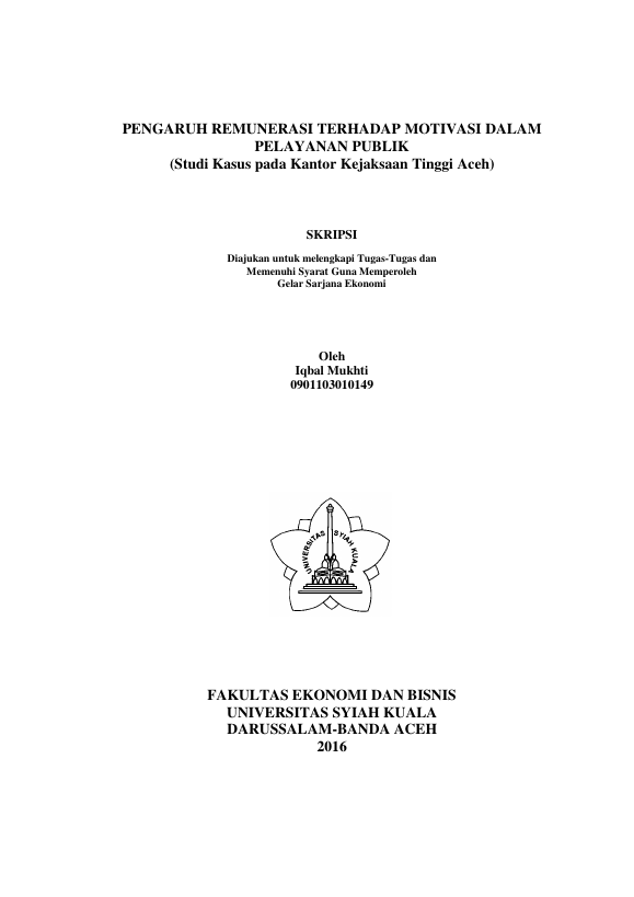 Baca Juga : PENGARUH REMUNERASI DAN MOTIVASI KERJA TERHADAP KINERJA APARATUR PERPAJAKAN (STUDI KASUS PADA KPP PRATAMA BANDA ACEH) (Nurul Qalby, 2014)