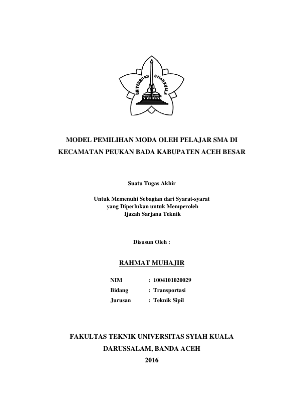 RAHMAT MUHAJIR, MODEL PEMILIHAN MODA OLEH PELAJAR SMA DI KECAMATAN PEUKAN BADA KABUPATEN ACEH BESAR. Banda Aceh Universitas Syiah Kuala,2016