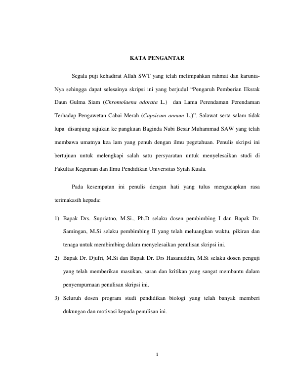 Endang Rizeki, PENGARUH PEMBERIAN EKSTRAK DAUN GULMA SIAM (CHROMOLAENA ODORATA L.) DAN LAMA PERENDAMAN TERHADAP PENGAWETAN CABAI MERAH (CAPSICUM ANNUM L.). Banda Aceh Universitas Syiah Kuala,2016