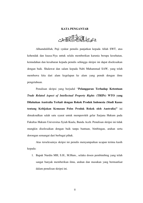 LAINATUSSARA, PELANGGARAN TERHADAP KETENTUAN TRADE RELATED ASPECT OF INTELLECTUAL PROPERTY RIGHTS (TRIPS) WTO YANG DILAKUKAN AUSTRALIA TERKAIT DENGAN ROKOK PRODUK INDONESIA (STUDI KASUS TENTANG KEBIJAKAN KEMASAN POLOS PRODUK ROKOK OLEH AUSTRALIA). Banda Aceh Universitas Syiah Kuala,2016