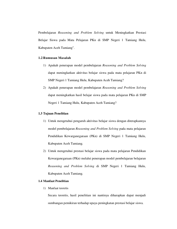 Baca Juga : PENGARUH MODEL PEMBELAJARAN PROBLEM SOLVING BERBANTUAN MEDIA QUESTION BOX TERHADAP HASIL BELAJAR SISWA KELAS XI DI SMA ISLAM MADRASATUL QUR’AN ACEH BESAR (SRI INDAH WAHYUNI, 2023)