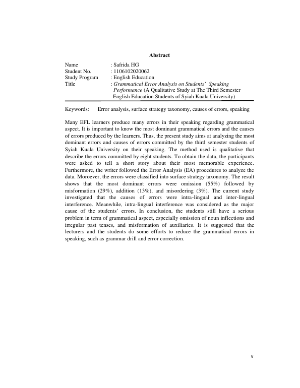 Baca Juga : GRAMMATICAL ERRORS PRODUCED BY STUDENTS IN WRITING (A QUALITATIVE STUDY AT THE FIRST GRADE STUDENTS OF SMP NEGERI 2 DARUL IMARAH,ACEH BESAR) (Siska Kardina, 2017)