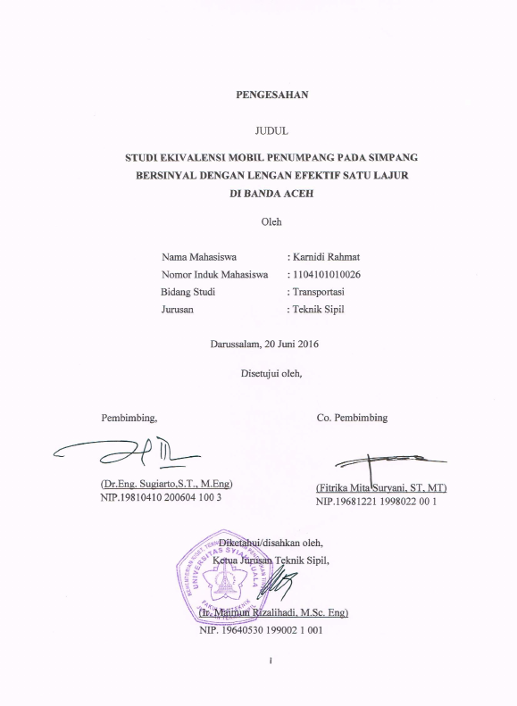 Baca Juga : STUDI EKIVALENSI MOBIL PENUMPANG PADA SIMPANG BERSINYAL DENGAN LENGAN EFEKTIF SATU LAJUR DI BANDA ACEH (Karnidi Rahmat, 2016)