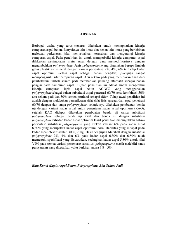 CUT ROSA BELLA, ANALISIS PENGGUNAAN POLYPROPYLENE DAN ABU SEKAM PADI TERHADAP KINERJA CAMPURAN LAPIS ASPAL BETON AC-WC. Banda Aceh Universitas Syiah Kuala,2016