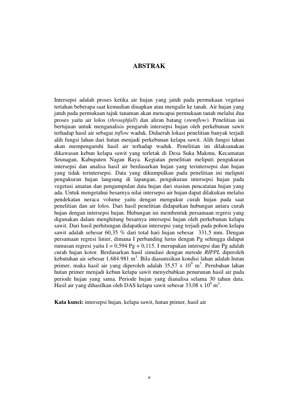 T. Muhammad Sulaiman Ubit, PENGARUH INTERSEPSI HUJAN OLEH PERKEBUNAN KELAPA SAWIT TERHADAP HASIL AIR SEBAGAI INFLOW WADUK. Banda Aceh Universitas Syiah Kuala,2016