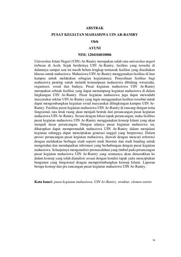 Ayuni, PERANCANGAN PUSAT KEGIATAN MAHASISWA UIN AR-RANIRY BANDA ACEH. Banda Aceh Universitas Syiah Kuala,2016