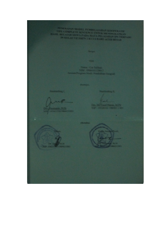 Baca Juga : PENERAPAN MODEL PEMBELAJARAN COMPLETE SENTENCE BERBANTUAN MEDIA AUDIO VISUAL UNTUK MENINGKATKAN HASIL BELAJAR GEOGRAFI SISWA KELAS X SMA NEGERI 12 BANDA ACEH (Tri Puji Astuti, 2018)