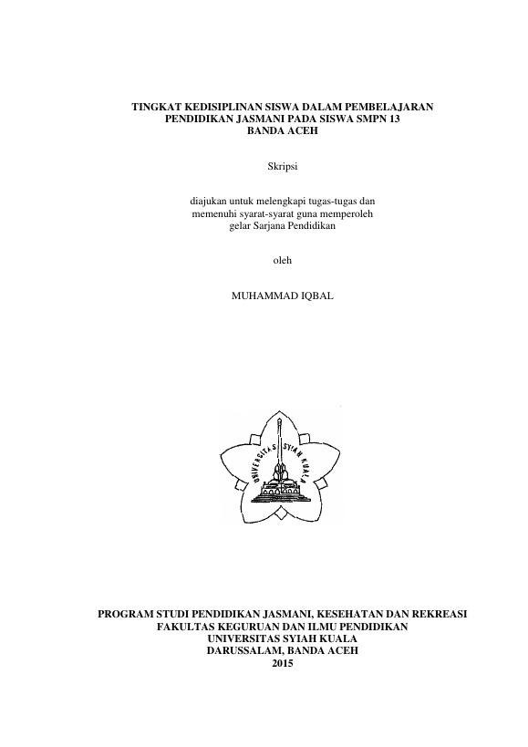 Baca Juga : TINGKAT KEDISIPLINAN SISWA DALAM PEMBELAJARAN PENDIDIKAN JASMANI PADA SISWA SMP NEGERI 13 BANDA ACEH (muhammad iqbal, 2016)