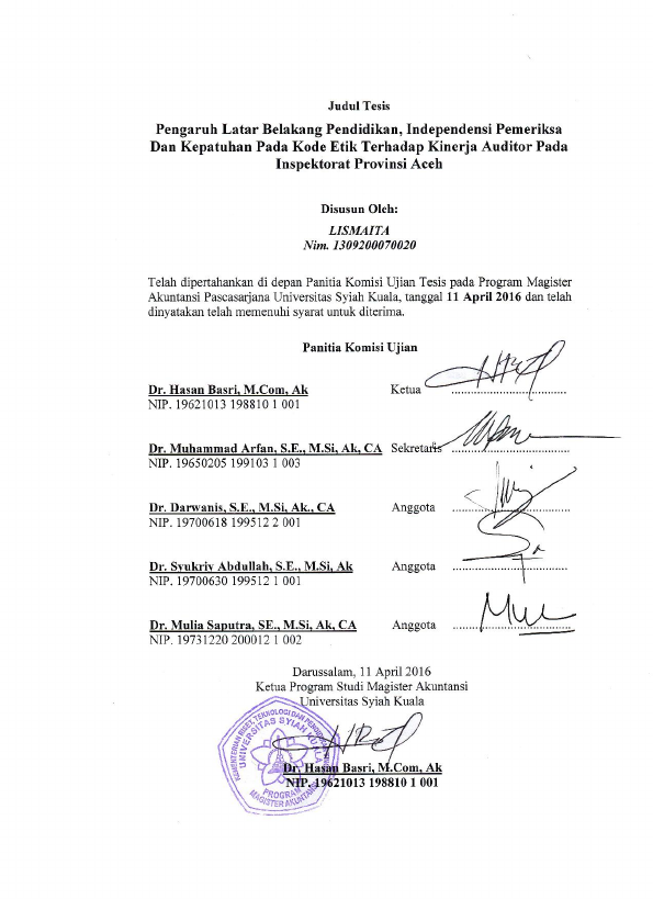 Baca Juga : PENGARUH INDEPENDENSI AUDITOR, INTEGRITAS AUDITOR, PROFESIONALISME AUDITOR, ETIKA PROFESI DAN GAYA KEPEMIMPINAN TERHADAP KINERJA AUDITOR DI BPK PERWAKILAN PROVINSI ACEH (Dwi Sumartono Agung Kurniawan, 2016)
